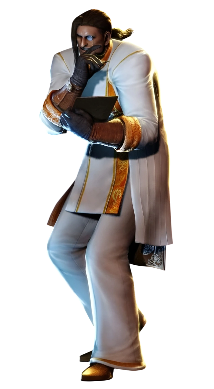 Agnus is a man with tanned skin and brown long hair tied in a ponytail. In addition of monocle over his left eye, he wears Order of The Sword's researcher uniform.