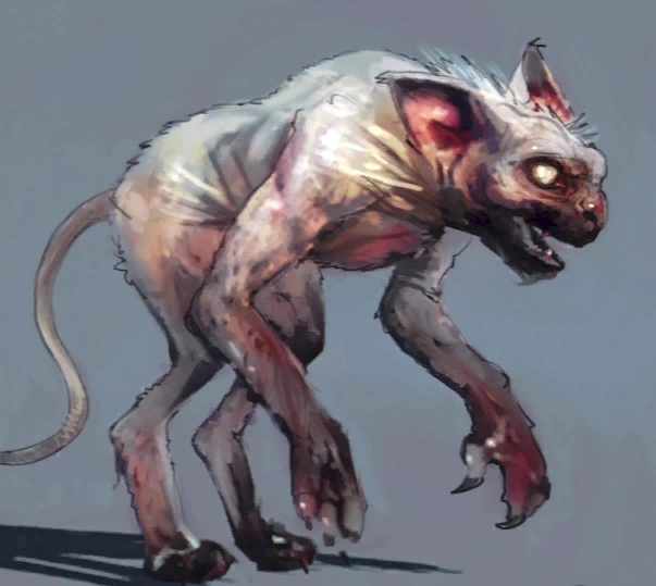 Rages take an appearance of a man-sized, pale porcupine (with features of a rat, ie: long tail) that have sharp, talon-like claws and are blanked out eyes.